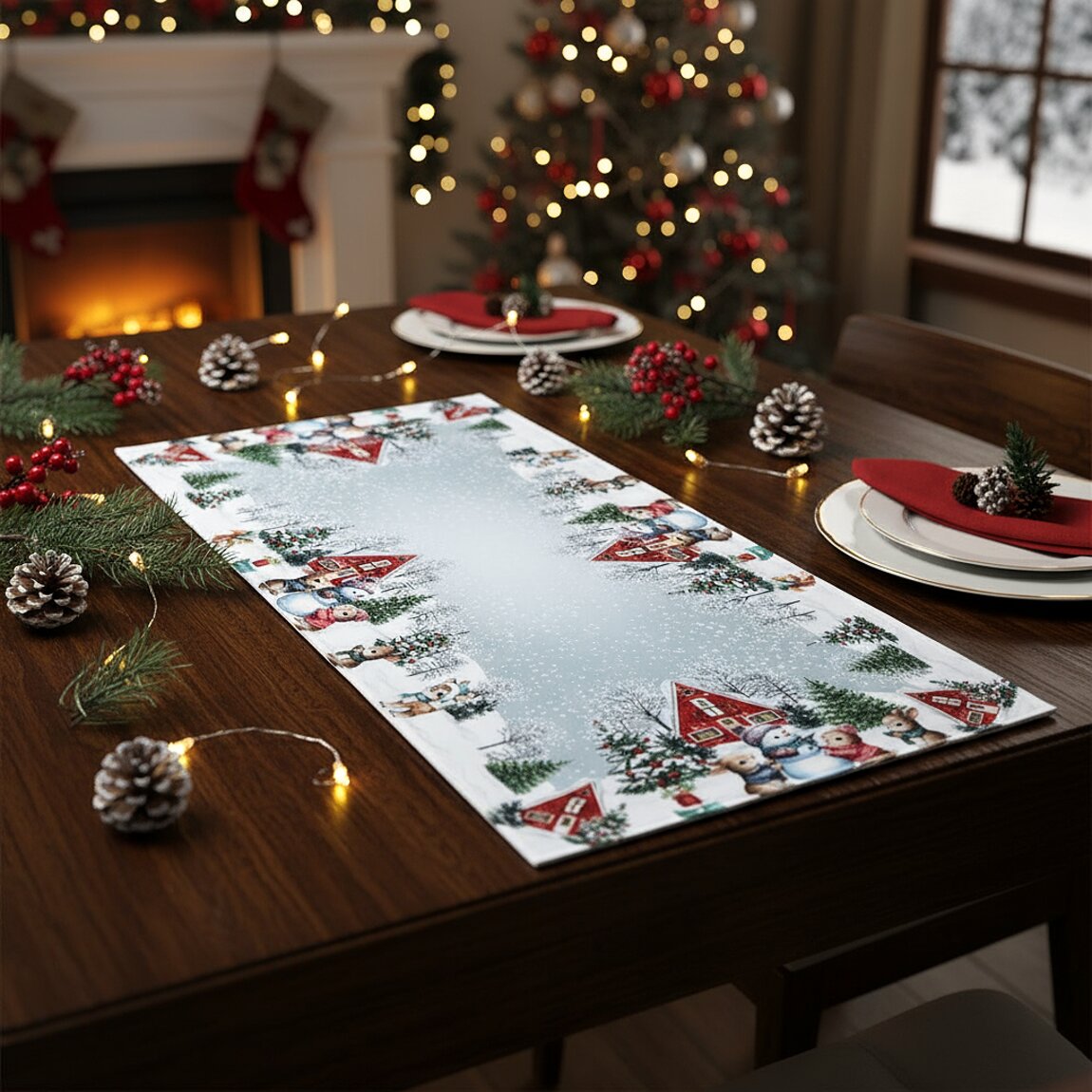 Vánoční ubrus - běhoun na stůl SNOWMANS FRIENDS 40x85 cm Mybesthome