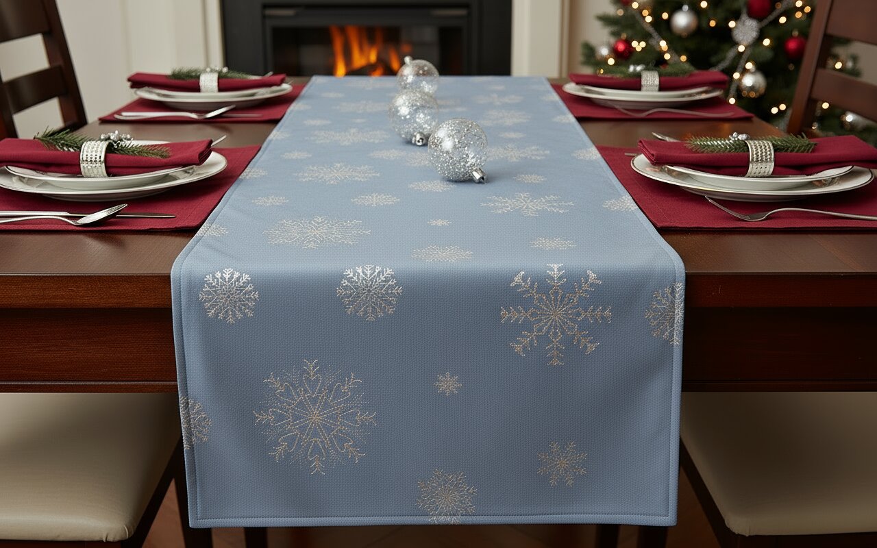 Vánoční ubrus - běhoun na stůl SNOWFLAKE světle modrá 40x160 cm Mybesthome