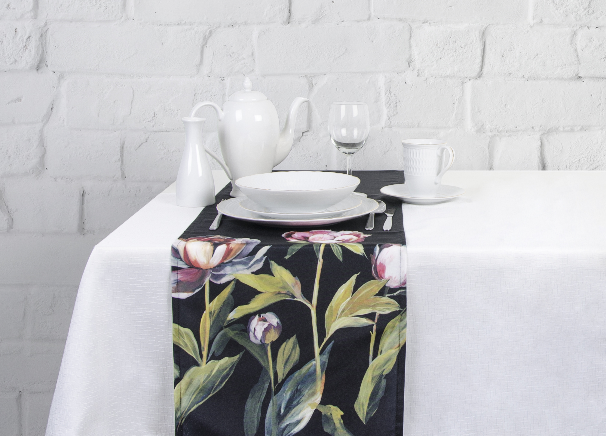 Ubrus - běhoun na stůl FLORELLO 35x180 cm, černá, ESSEX