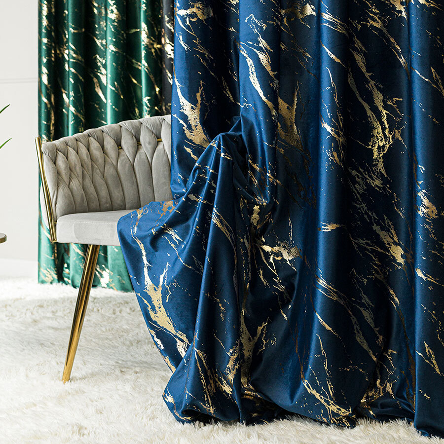 Dekorační vzorovaný závěs s řasící páskou MARBE 011 modrá/zlatá 140x250 cm (cena za 1 kus) MyBestHome