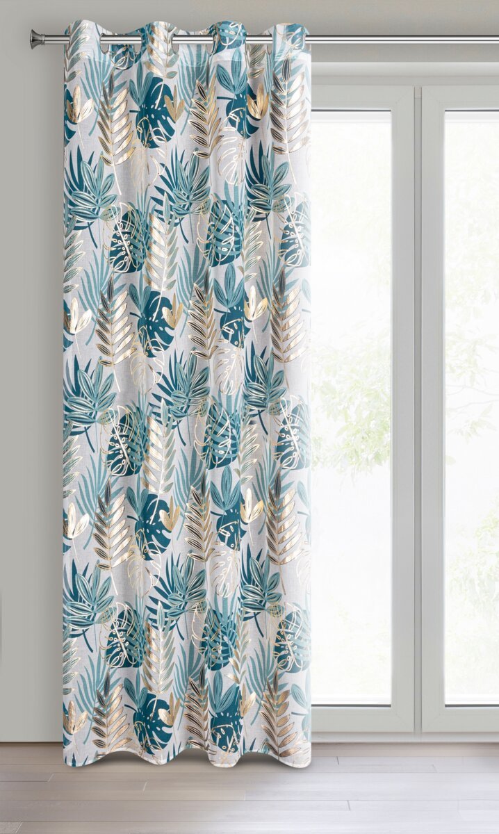 Dekorační jemný závěs s kroužky KATYNA tyrkysová/zlatá 140x250 cm (cena za 1 kus) MyBestHome