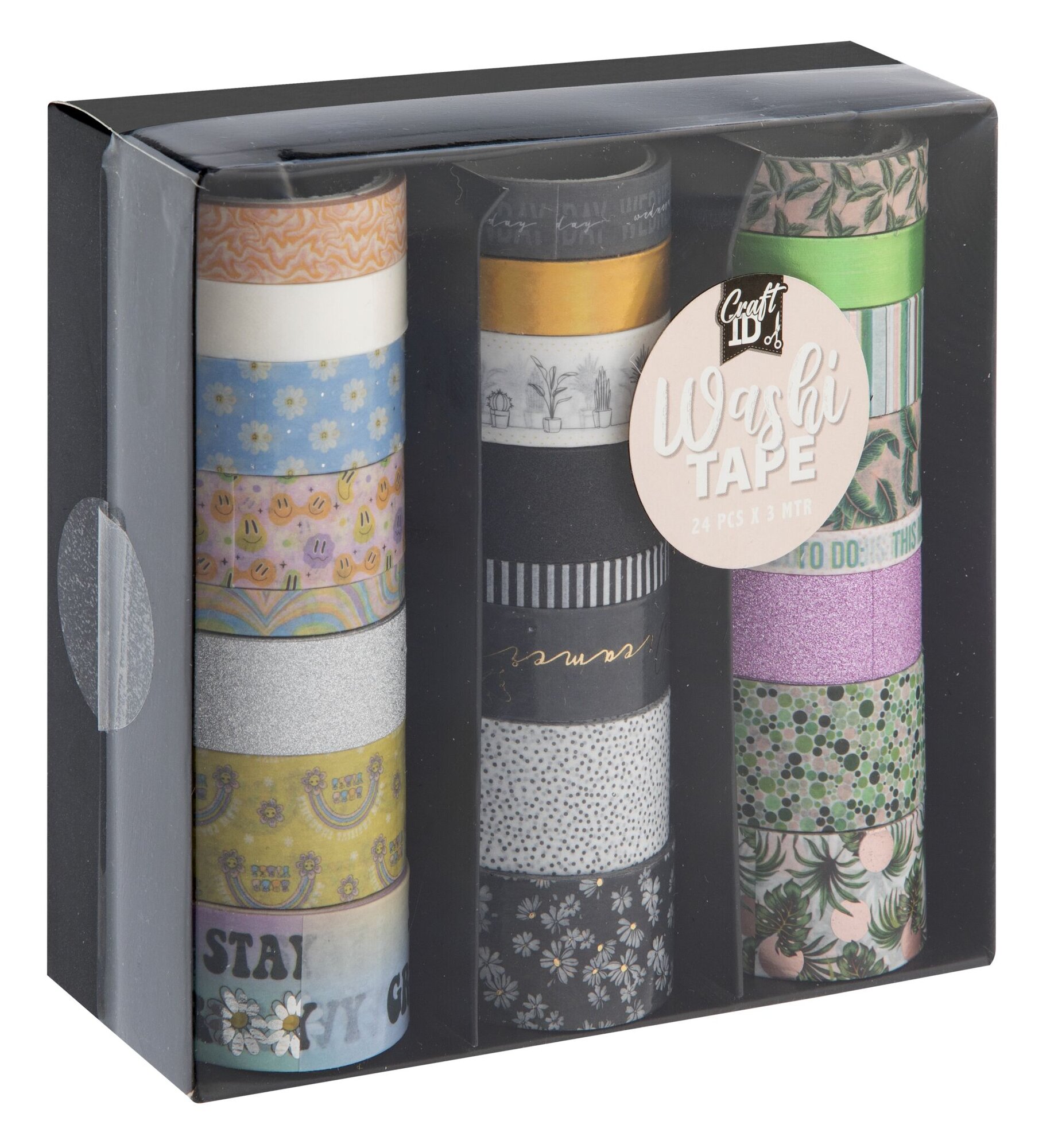 Dekorační lepicí páska - Washi pásky, 3m, 24ks v boxu (růžová)