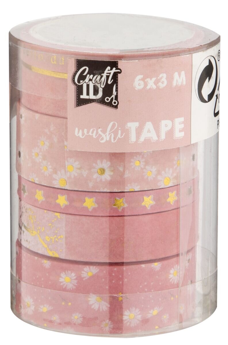 Dekorační lepicí páska - Washi pásky růžové, 6 ks x 3 m