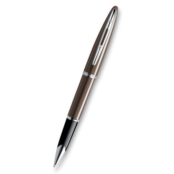 Lakované mosazné tělo a víčko v ledově hnědém tónu. V kombinaci s doplňky pokovenými stříbrem a rhodiem.