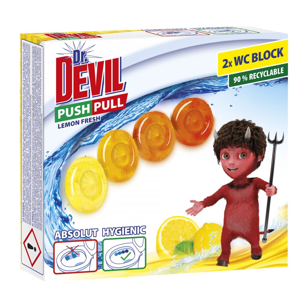 Dr. DEVIL PUSH PULL bezkošíkové hygienické wc bloky Lemon Fresh 2x20g