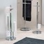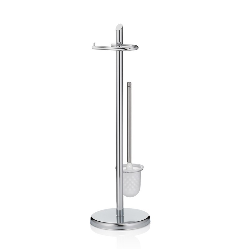 Kovová toaletní sada Ken ve stříbrné barvě s lesklým chromovým povrchem se hodí k mnoha stylům zařízení. Díky zaobleným prvkům základní desky, tyče a držáku papíru vypadá tato sada stojanů moderně a dynamicky. Varianta: stříbrná, výška: 73 cm, průměr základní desky: 22 cm. S držákem na kartáč z plastu. Kov pochromovaný lesklý 22 cm , 73 cm v