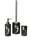 Rozměry : kalíšek na zubní kartáček 7x12 cm, dávkovač na mýdlo 7x18 cm, toaletní štětka 10x40 cm
