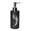 Koupelnový set z glazované keramiky v trendových barvách a vzorech. Sestava se skládá z kalíšku na zubní kartáček, dávkovače na mýdlo a toaletní štětky.