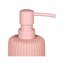 Koupelnový set z polymerové pryskyřice v trendových barvách a vzorech. Sestava se skládá z kalíšku na zubní kartáček, dávkovače na mýdlo a toaletní štětky.