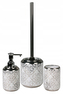 Rozměry : kalíšek na zubní kartáček 8x11 cm, dávkovač na mýdlo 8x17 cm, toaletní štětka 11x40 cm
