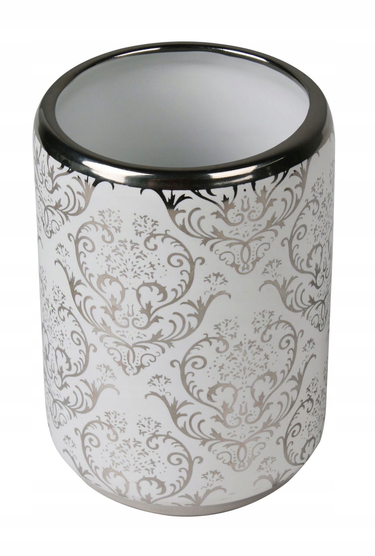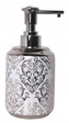 Koupelnový set z glazované keramiky v trendových barvách a vzorech. Sestava se skládá z kalíšku na zubní kartáček, dávkovače na mýdlo a toaletní štětky.