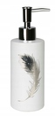 Koupelnový set z glazované keramiky v trendových barvách a vzorech. Sestava se skládá z kalíšku na zubní kartáček, dávkovače na mýdlo a toaletní štětky.