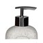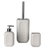 Koupelnový set z glazované keramiky v trendových barvách a vzorech. Sestava se skládá z kalíšku na zubní kartáček, dávkovače na mýdlo a toaletní štětky.