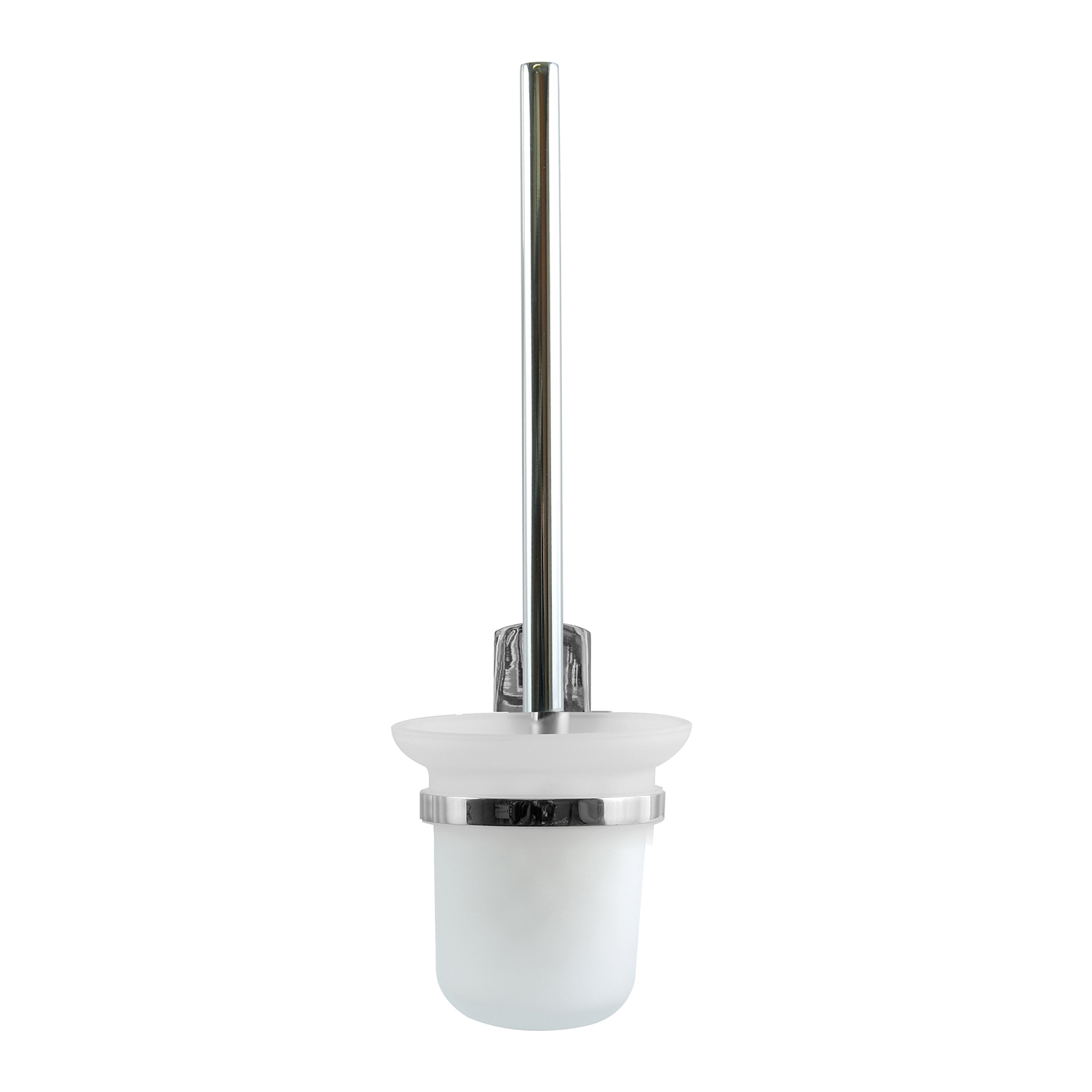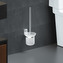 Spirella nástěnná WC štětka TAKU, se skleněnou nádobou, matná bílá, lesklá chromovaná ocel