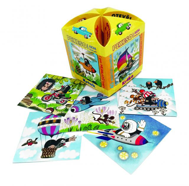 Tato stolní hra přichází s 40 kartičkami zdobenými motivem oblíbeného Krtka a je uložena v praktické krabičce ve tvaru hvězdičky s ozdobným zavíráním. Součástí balení jsou i kartičky s návody k hraní dvou různých principů hry, takže si vybere každý. Pexeso je skvělou pomůckou k rozvoji paměťových schopností, postřehu a zároveň podporuje společenskou interakci mezi hráči všech věkových kategorií.