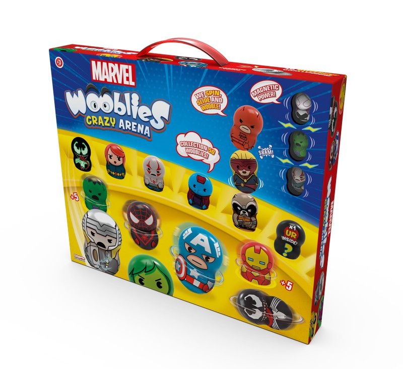 Bojová arena pro vaše souboje, navíc se 4 wooblíkami! Balení obsahuje: 4x Wooblík, 2x turbo vystřelovač, 4x Sběratelská kartička, 1x Letáček se seznamem figurek a her a bojová aréna s madlem na přenášení. Sesbírej je všechny!S Wooblíky je zábava! Tuto novou kolekci sběratelských wooblíků s motivy superhrdinů prostě nebudeš chtít pustit z ruky! Wooblíky se otáčí, převrací, kmitají, prostě „wooblují“! Díky skrytému magnetu se vždy vrací zpátky „na nohy“. Nekonečné možností hraní.