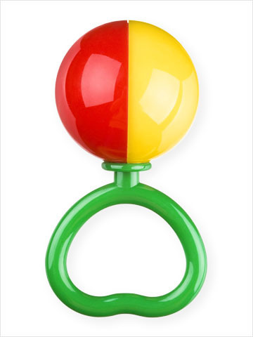 Klasické pestrobarevné chrastítko koule s ručkou ve staru srdíčka z plastu. Rozměr 11 cm. Vhodné od narození. číst celé