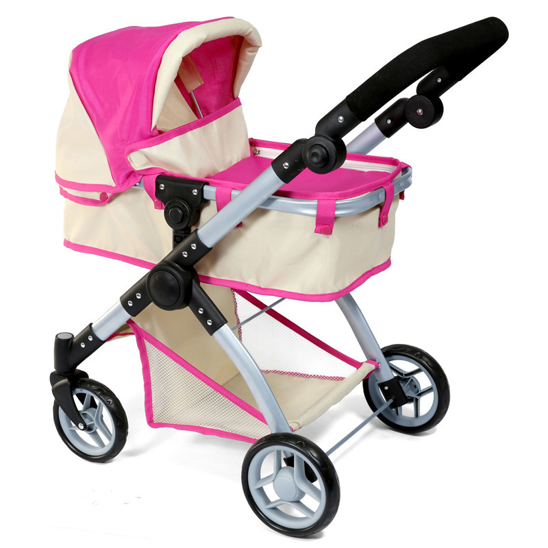 Hluboký kočárek 2v1 pro panenky růžovo/béžový je výborný dárek pro malé maminky. Kočárek má vespod praktický košík na nákupy nebo hračky. Kočárek má polohovací rukojeť a otočná kolečka. číst celé