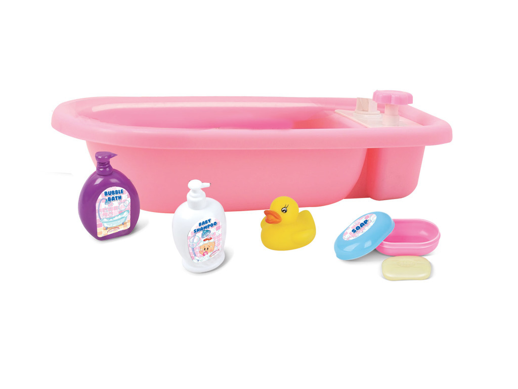 Vana pro panenky Bambolina s doplňky - vana je vhodná pro menší panenky, protože je dlouhá pouze 32 cm, což ale vůbec nevadí, dcera si s ní vyhraje i tak hodně, větší panenky do ní posadí a umývá je v sedě. Tahle sada obsahuje i doplňky je koupání a to sice, dětské mýdlo, dětský šampon i kachničku na hraní do vany. Je sice plastová, ale kvalitně zpracovaná a pro milovnice panenek a miminek, jako je ta moje dcera je to skvělý dárek, který je zabaví. Doporučuji.