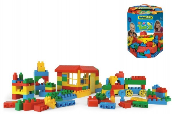 Kostky stavebnice pro kluky plast 102ks v papírové krabici 23x30x23cm Wader 12m+