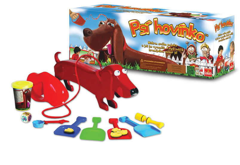 Nakrmte psa, běžte s ním na procházku a uvidíte, co se stane. Zábavná hra pro volné chvíle!Starejte se o svého pejska, dávejte mu najíst, jděte ho vyvenčit ... a když pejsek udělá hromádku, seberte ji. První hráč, který na své lopatce nasbírá tři hromádky, zvítězí. Postup hry: Připrav pejskovi lahůdku. Nakrm pejska. Hoď kostkou. Co to je za zvuk? Co to dělá? Sbírej psí hromádky a vyhraj! Hra obsahuje: - psa s vodítkem a pumpičkou - kost - házecí kostku - 4 lopatky - nádobku s psím krmivem - formičku - pravidla hry