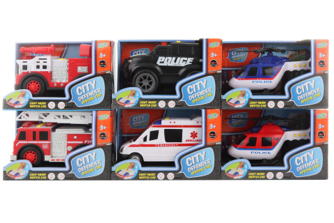 Auto (vrtulník) na baterie. Po stisknutí tlačítek svítí a vydává zvuky. Napájení na 3 AG13 baterie (jsou součástí). Rozměry balení cca 20 x 13 x 11 cm. Věk 3+