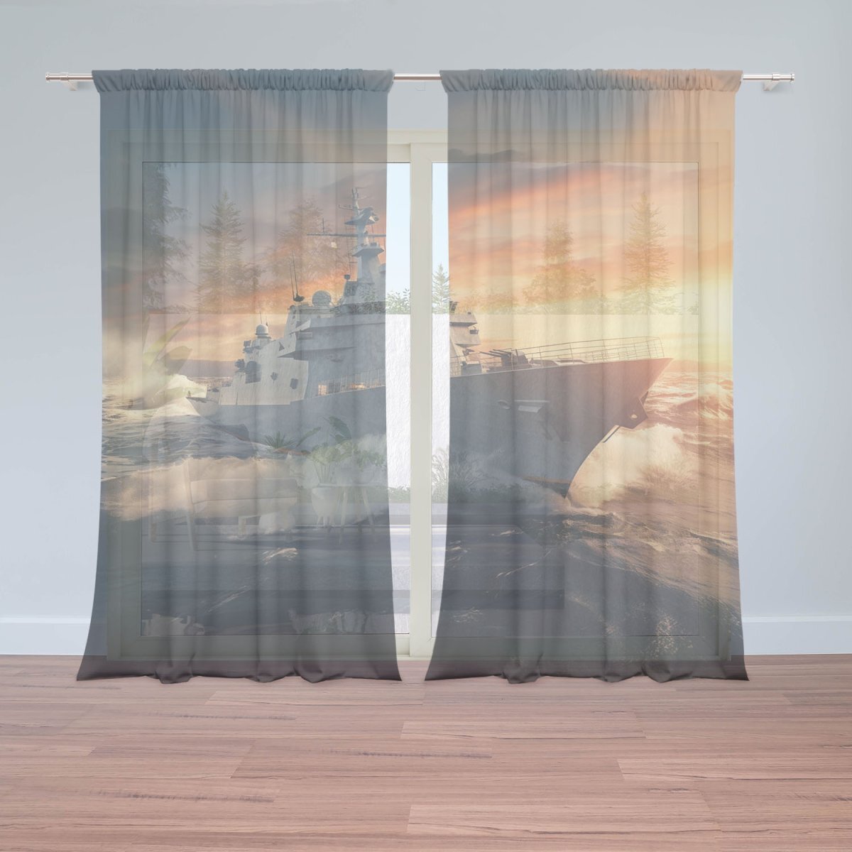 Záclony Válečná loď v rozbouřených vodách: 2ks 150x250cm