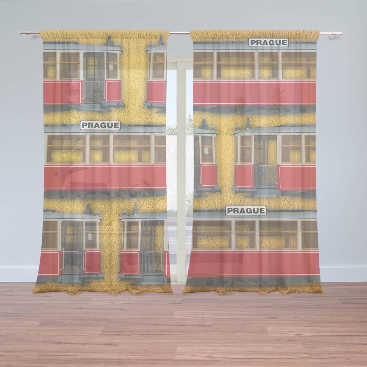 Záclony Pražské historické tramvaje Žlutý Pattern: 2ks 150x250cm