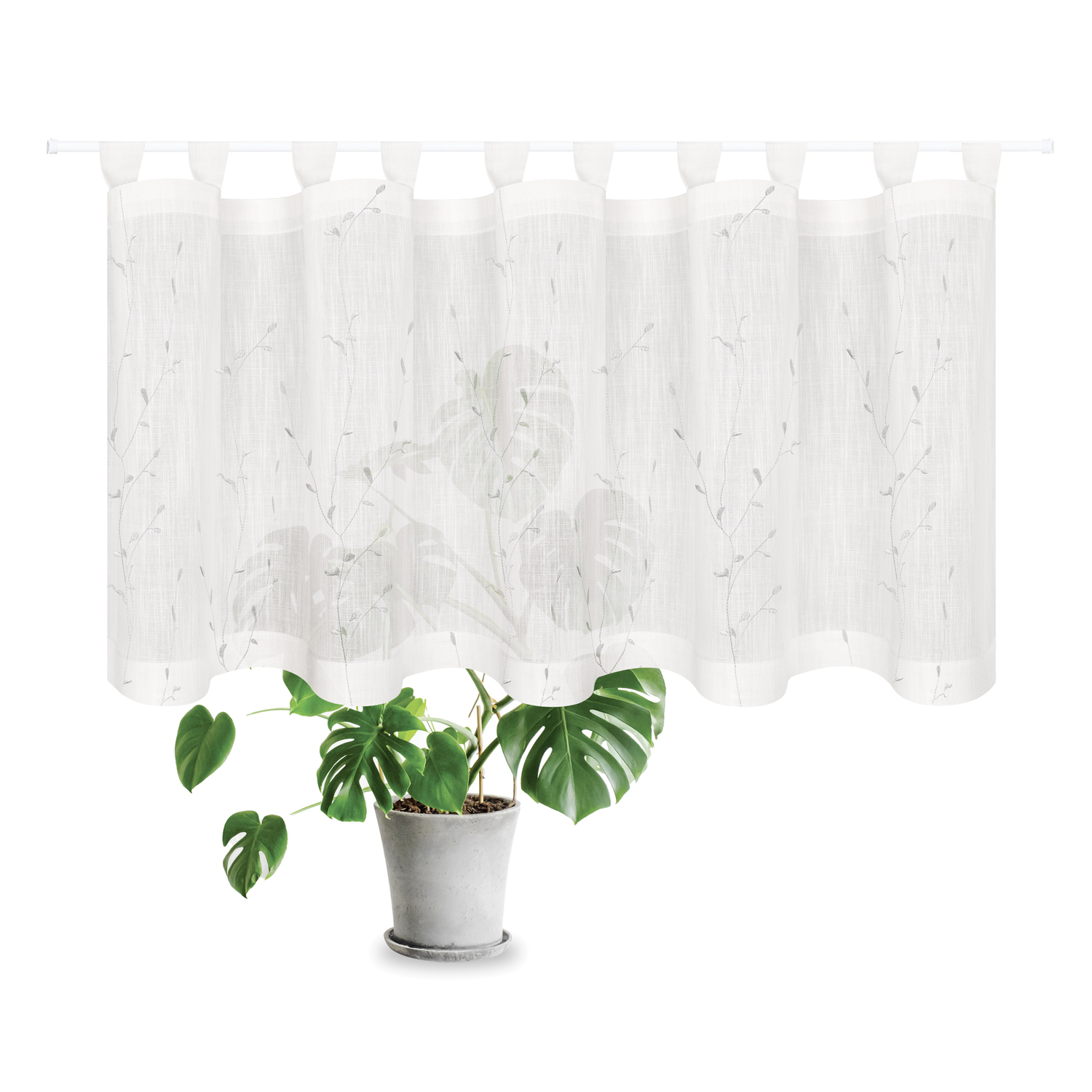 Krátká záclonka s poutky, výšivka větvičky - světle šedá, 50 mm, 150 mm