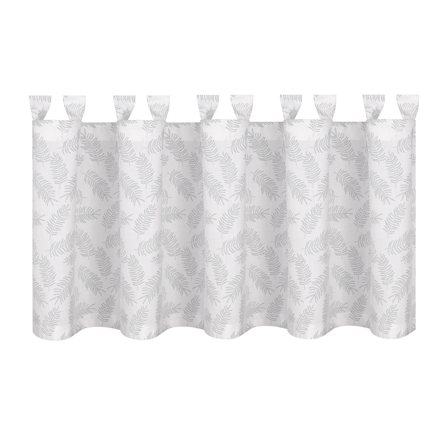 Krátká záclonka s poutky, potisk kapradí - antracit, 50 mm, 150 mm