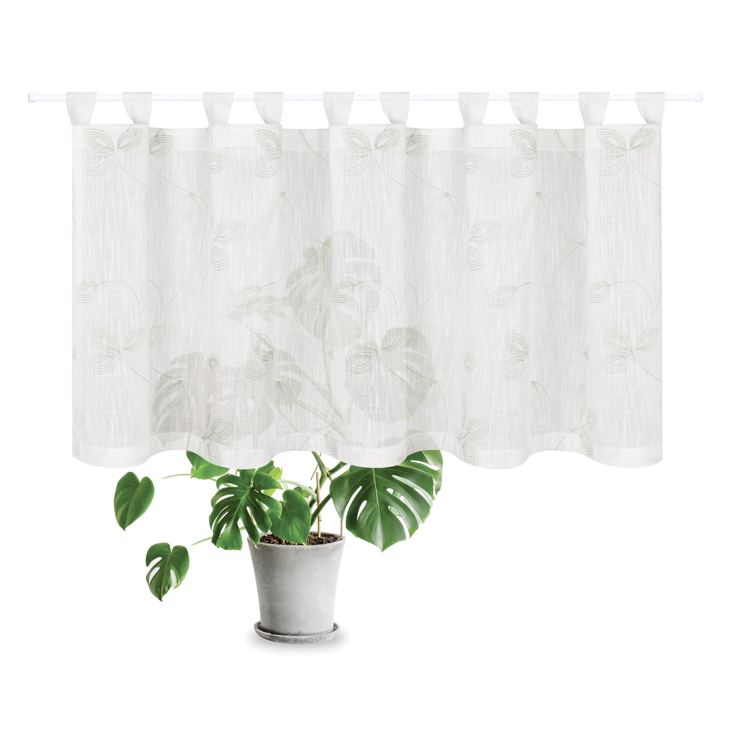 Krátká záclonka s poutky, květinový motiv - zelená, 50 mm, 150 mm