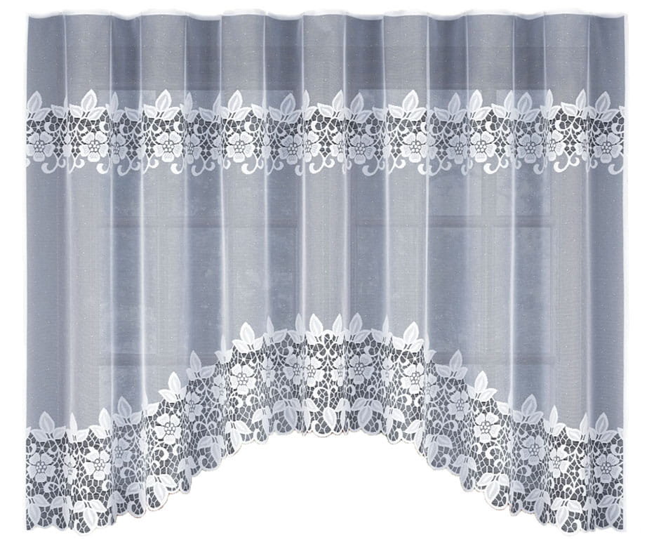 Kvalitní žakárová hotovádekorační záclona s řasící páskou v moderním provedení do kuchyně nebo obývacího pokoje v rozměru 300x160 cm. Záclona je připravena na zavěšení na žabky nebo háčky. 1 kus v balení. Záclona má řasící pásku 3,5 cm.