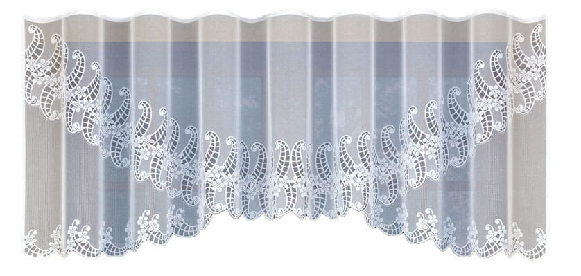 Kvalitní žakárová hotovádekorační záclona s řasící páskou v moderním provedení do kuchyně nebo obývacího pokoje v rozměru 300x120 cm. Záclona je připravena na zavěšení na žabky nebo háčky. 1 kus v balení. Záclona má řasící pásku 3,5 cm.