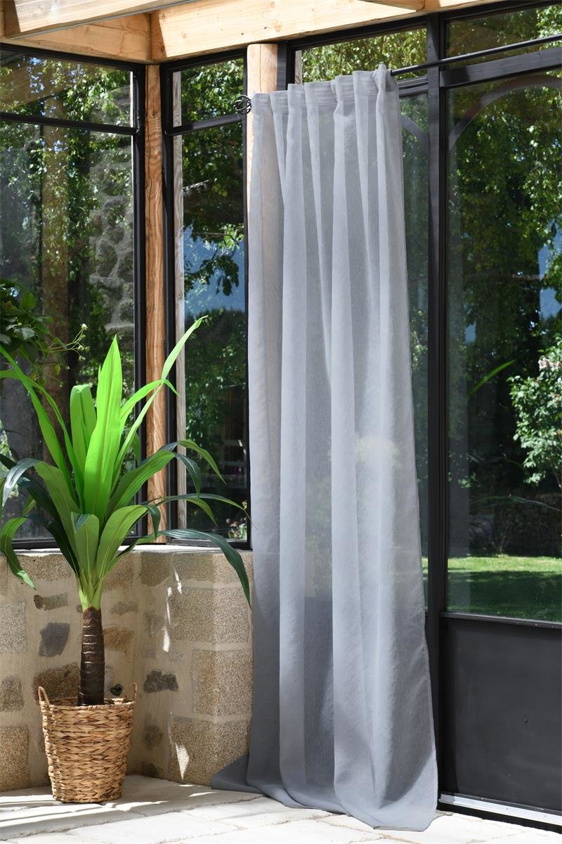 Dekorační záclona s poutky režného vzhledu DERBY světle šedá 140x260 cm (cena za 1 kus) France