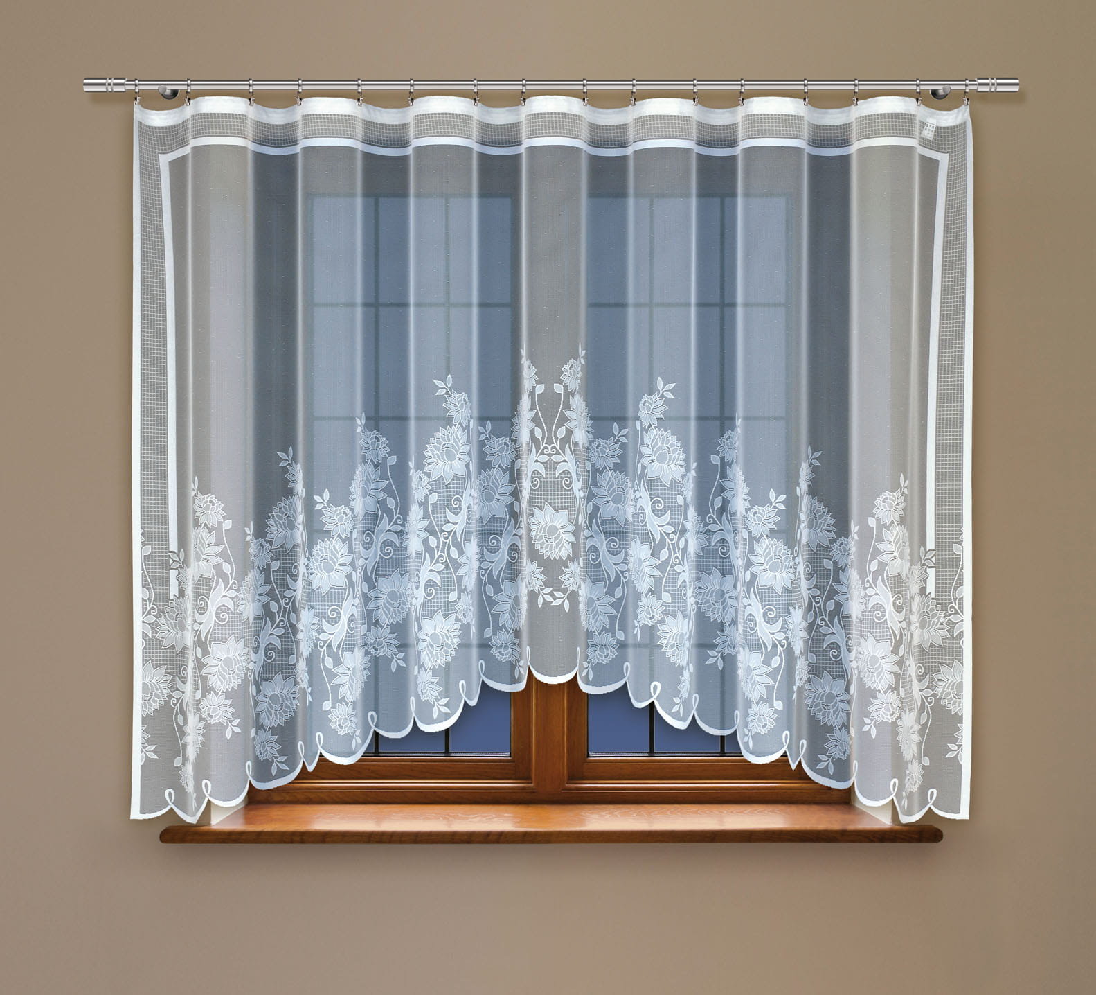 Kvalitní žakárová hotovádekorační záclona s řasící páskou v moderním provedení do kuchyně nebo obývacího pokoje v rozměru 300x160 cm. Záclona je připravena na zavěšení na žabky nebo háčky. 1 kus v balení. Záclona má řasící pásku 3,5 cm.
