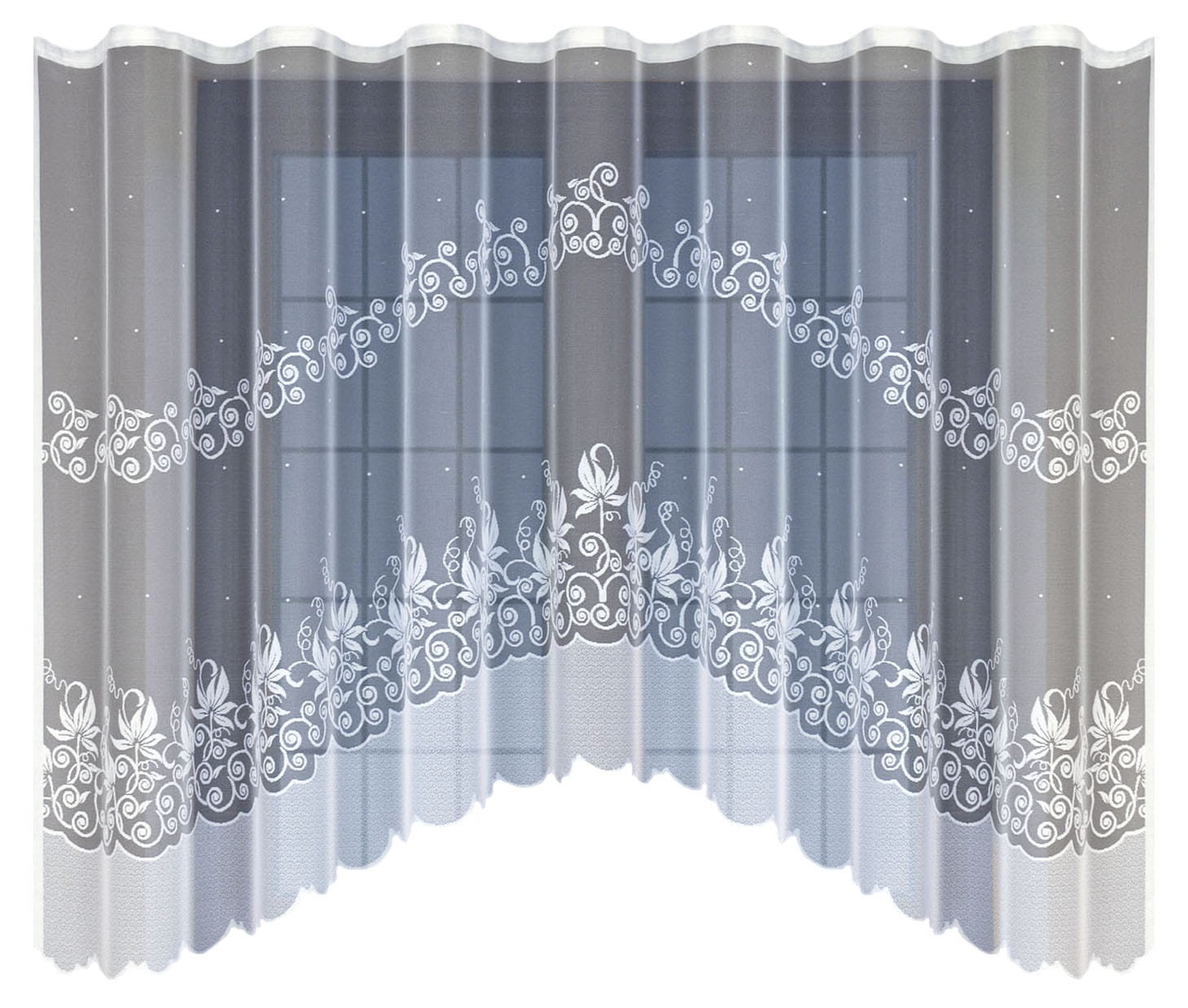 Kvalitní žakárová hotovádekorační záclona s řasící páskou v moderním provedení do kuchyně nebo obývacího pokoje v rozměru 300x160 cm. Záclona je připravena na zavěšení na žabky nebo háčky. 1 kus v balení. Záclona má řasící pásku 3,5 cm.