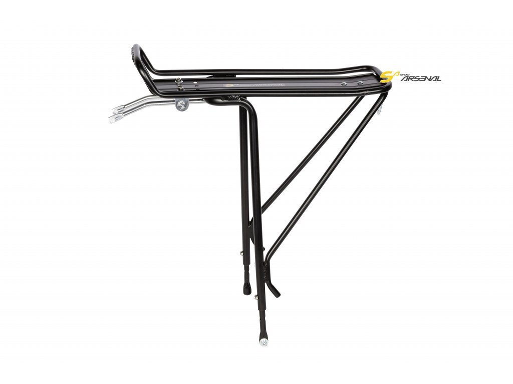 Díky použití kvalitního hliníkového materiálu AW-6061 je nosič nejen pevný, ale také velmi lehký - váží pouhých 690 gramů. Můžete ho namontovat na kola s V-brzdami i moderními kotoučovými brzdami, protože je dodáván se vyměnitelnými dolními úchyty. Navíc disponuje výškově nastavitelnou konstrukcí, která zajistí optimální upevnění brašen a dalšího vybavení. Praktický gumicuk na nosiči zaručuje, že vaše zavazadla budou na místě i na náročném terénu.