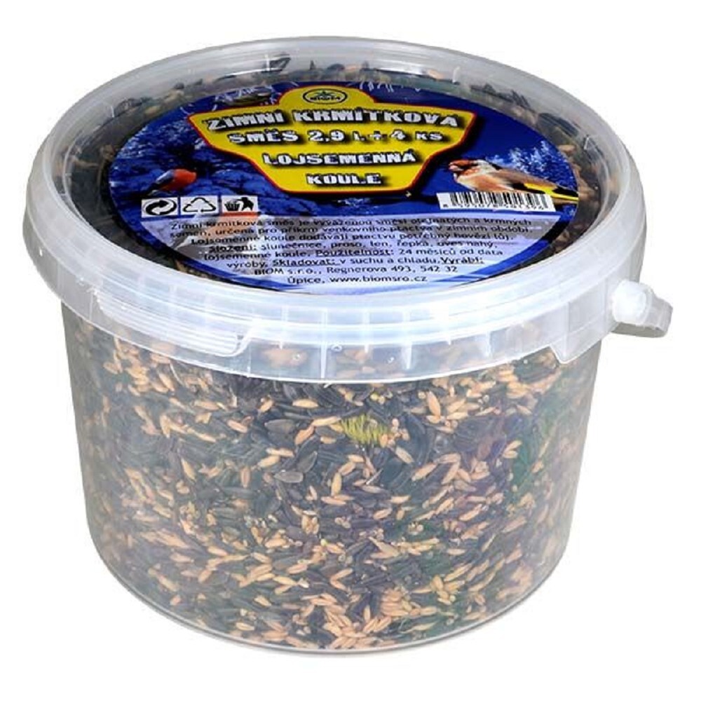 Zimní krmítková směs 2,9 l + 4 ks lojsemenná koule, kbelíček"