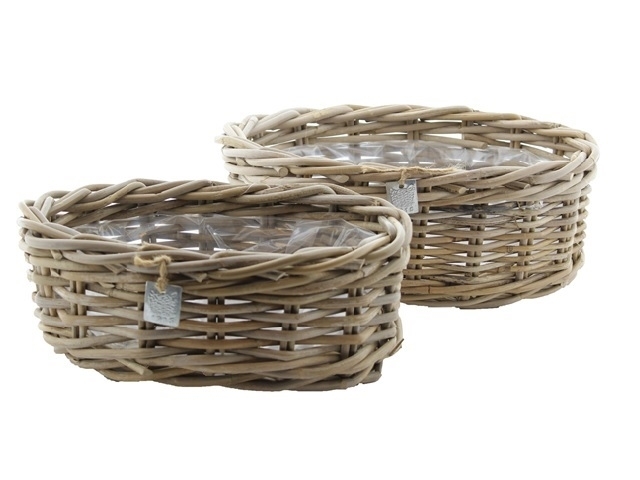 Sada 2ks ratanových košíků s igelitovou výplní.