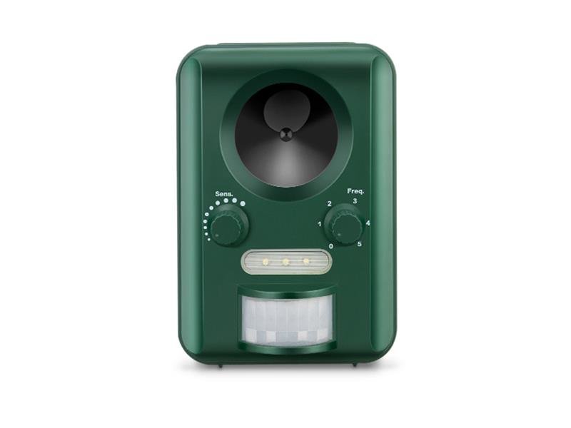 Tento odpuzovač využívá moderní detekční systém, který při zachycení pohybu v dosahu čidla aktivuje silné ultrazvukové vlny a ostré stroboskopické světlo. Tento účinný způsob vyplašení škůdců je zároveň naprosto bezpečný pro lidi i domácí zvířata.