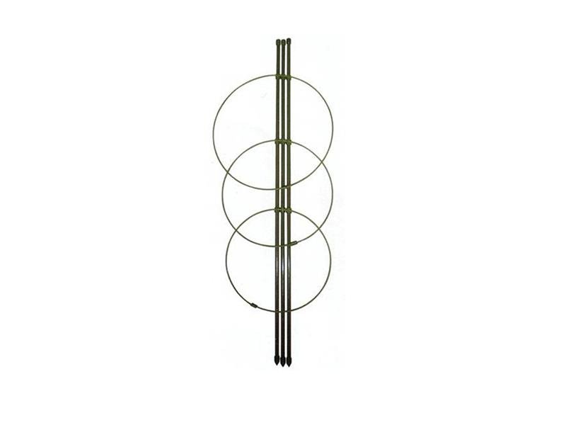 Popis držáku na květy plastového 60cm / 3 kroužky: Držák obsahuje tři tyče a tři kruhy v různé výšce připevněné na tyčích. Po instalaci tyčí do okrajů květináče je kytka bezpečně zafixovaná v kruhové konstrukci. Držák má nejen podpěrnou ale i estetickou funkci.