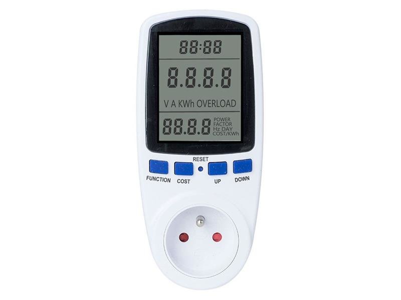 Wattmetr a měřič spotřeby PMB-2. Umožňuje přehledným způsobem zjišťovat, měřit a sledovat spotřebu elektrické energie elektrických spotřebičů, vypočítat náklady za elektrickou energii a zaznamenat dobu připojení elektrických spotřebičů k měřiči. Aktuální naměřené hodnoty jsou zobrazovány na LCD displeji. Vlastnosti: Zobrazení síťového napětí Zobrazení spotřeby energie Zobrazení aktuálního zatížení soketu (výkon zařízení ve wattech) Zobrazuje a ukládá množství spotřebované elektřiny Zobrazuje a ukládá celkový čas zapnutí a energie (po definování rychlosti) Zobrazuje frekvenci elektrické sítě, faktor výkonu.