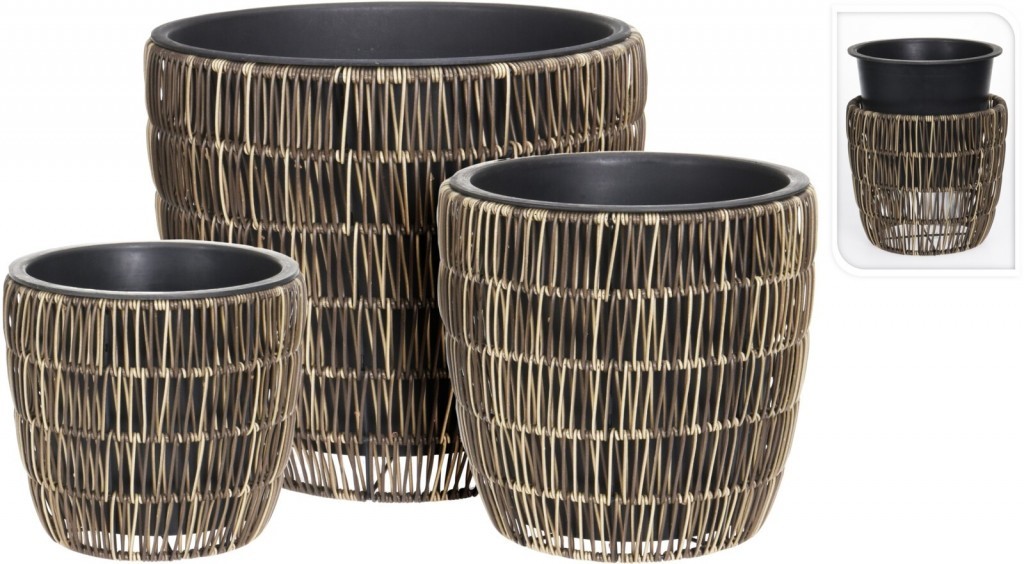 Květináč ratan s vložkou sada 3 ks žíhaný
