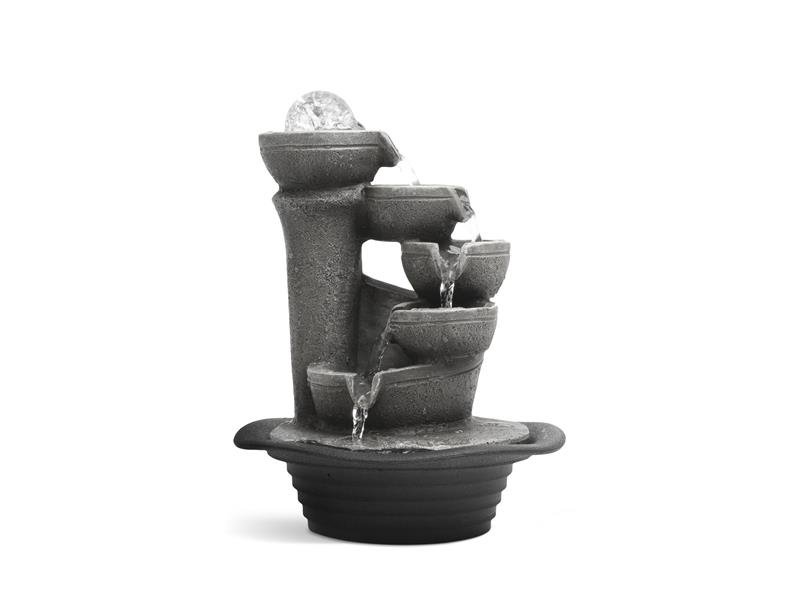 Tato fontána do interiéru může být krásnou ozdobou vašeho pokoje. Tečení vody a LED osvětlení skleněné koule vytvářejí příjemnou, uklidňující atmosféru ve stresujícím každodenním životě. Během zimních měsíců přirozené odpařování vody během cirkulace vody zvyšuje vlhkost vzduchu v místnosti, což může mít příznivý vliv na naše zdraví.