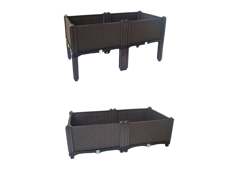 Plastová květinová bedna z prvků, ale může se použít i jako samostatný plastový plot. Prvky mohou být podle potřeby tvarovány a navzájem spojeny. S několika sadami lze vyrobit ještě výše bedny. Díky otvorům ve spodní části může přebytečná voda snadno odtékat. pro terasy, balkony, zahrady.