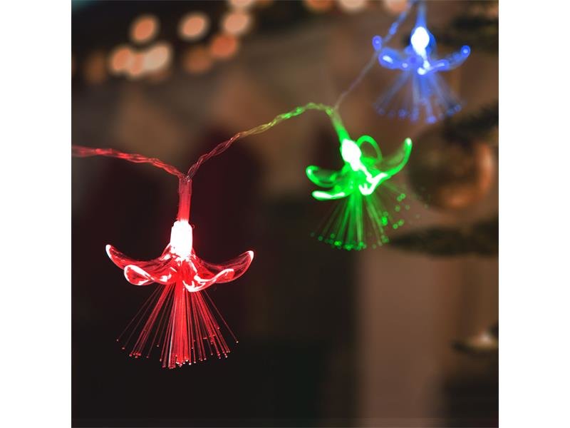 Světelný řetěz sestávající z barevných květin, který vytváří příjemnou atmosféru. Květy a tenké mikrovlákno osvětlují barevné LED. Může být ideální na zdobení vánočních stromů, girlandů, polic, věnců a také závěsů. baterií.