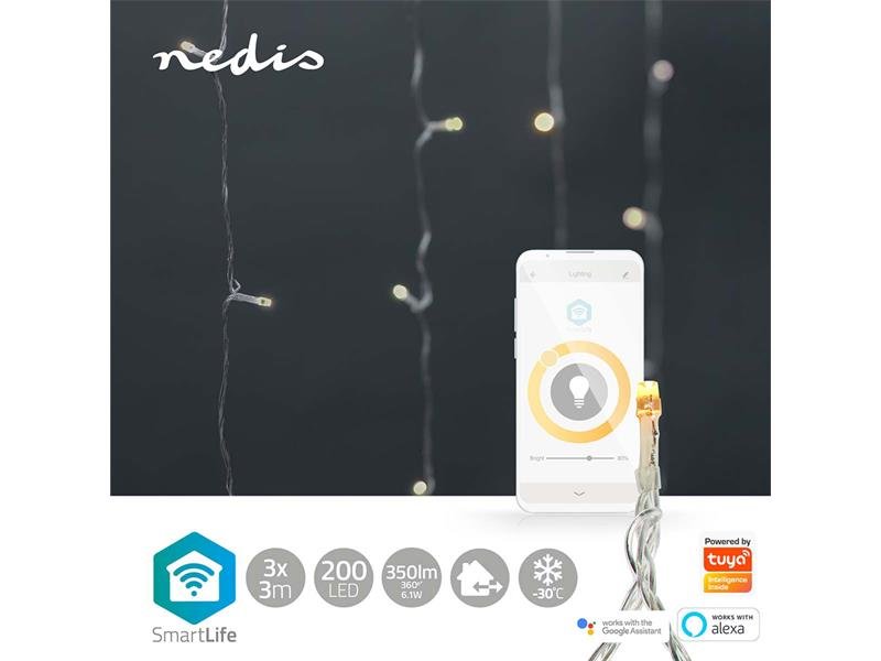 Tento Nedis® Chytrý Wi-Fi závěs s 200 LED diodami v teplé bílé se snadno používá a obsahuje 10 řetězů po 20 LED diodách a ideálně se hodí na ozdobení zdí, střech a oken. Díky pokročilé chytré technologii pozvedne vaši výzdobu na další úroveň. Nejen že můžete ovládat preferovaný jas, ale můžete si v aplikaci rovněž vybrat jeden ze 7 předdefinovaných efektů s různými druhy pohyblivých vzorů nebo režim stálého světla. Pro ještě větší pohodlí můžete nastavit časovače a harmonogramy tak, aby se světelný řetěz vždy rozsvítil v ten správný čas. Pomocí hlasového ovládání prostřednictvím asistentů Amazon Alexa nebo Google Assistant můžete řetěz pouhým hlasovým příkazem zapnout a vypnout nebo ztlumit či navolit jeho jas. Integrovaná funkce mikrofonu umožňuje, aby diody reagovaly na hudbu nebo jiné zvuky. Průhledná barva kabelu se hodí ke každému pozadí a nijak nenarušuje výsledný vzhled. Díky napájecímu kabelu o délce 3 metrů se nemusíte bát, že nedosáhnete k zásuvce. To se velice hodí zejména tehdy, pokud máte zásuvku kousek dál. Stromeček lze umístit i ven.