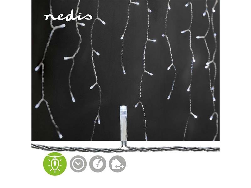 Tato Nedis® dekorativní LED světla ve tvaru rampouchů o délce 5,9 metrů dodají zimní výzdobě dokonalou atmosféru studeného bílého světla. Vytvořte si krásnou sváteční atmosféru uvnitř nebo i venku. Vyberte jeden ze 7 přednastavených efektů, které hrají různými tvary, nebo režim stálého svícení. Používejte přednastavený časovač zapnutí a vypnutí k naplánování svícení a už nikdy se světelný řetěz nezapne ve špatnou dobu. Průhledný kabel snadno splyne s pozadím a nijak nenarušuje výsledný vzhled. Na řetěze je celkem 180 LED diod, které visí na kratších řetězech s různým počtem LED diod, v různém pořadí se na rampouších nachází 2, 3, 6 nebo 7 LED diod. Nadstandardně dlouhý napájecí kabel o délce 5 metrů zajišťuje maximální flexibilitu, i když je zásuvka daleko.