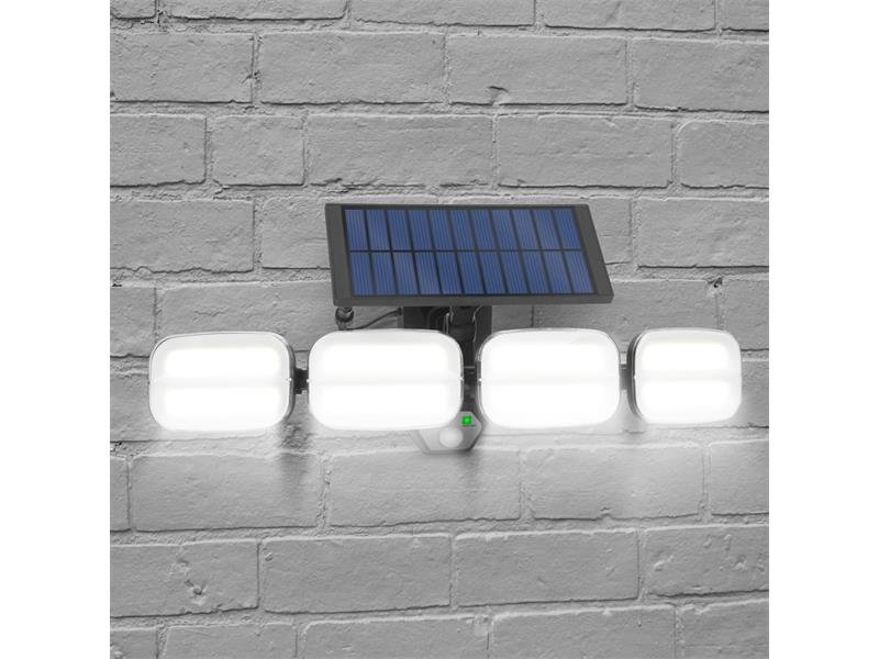 Vysoce výkonný nástěnný reflektor se senzorem pohybu, který díky silným LED diodám a externí solární jednotce s kabelem dokáže dokonce osvětlit celou místnost! Solární jednotku umístěte na slunné místo a kabel převeďte ke svítící jednotce. Vyrobená z moderních technologií 4 x 2, COB LED osvětluje oblast s obrovským jasem, ať už se používá venku nebo v interiéru. LED diody, které lze otáčet podél dvou os, jsou libovolně nastavitelné, takže s nimi můžete osvětlit přesně požadovanou oblast. Může být ideální pro osvětlení teras, vchodů, přístřešků pro auto nebo dokonce garáží. Díky solárnímu provedení není nutná kabeláž, elektrická , dá se snadno instalovat kdekoli. Ve tmě a při slabém osvětlení pohyb automaticky zapne světelný zdroj COB LED. Světlo se automaticky vypne po ~ 20 sekundách. Během dne se díky solárnímu článku zabudovaná baterie nabíjí, takže ji můžete levně osvětlit bez spotřeby elektrické energie. Mezi zabudovanými funkcemi osvětlení můžete také pohodlně přepínat pomocí dodávaného dálkového ovladače.