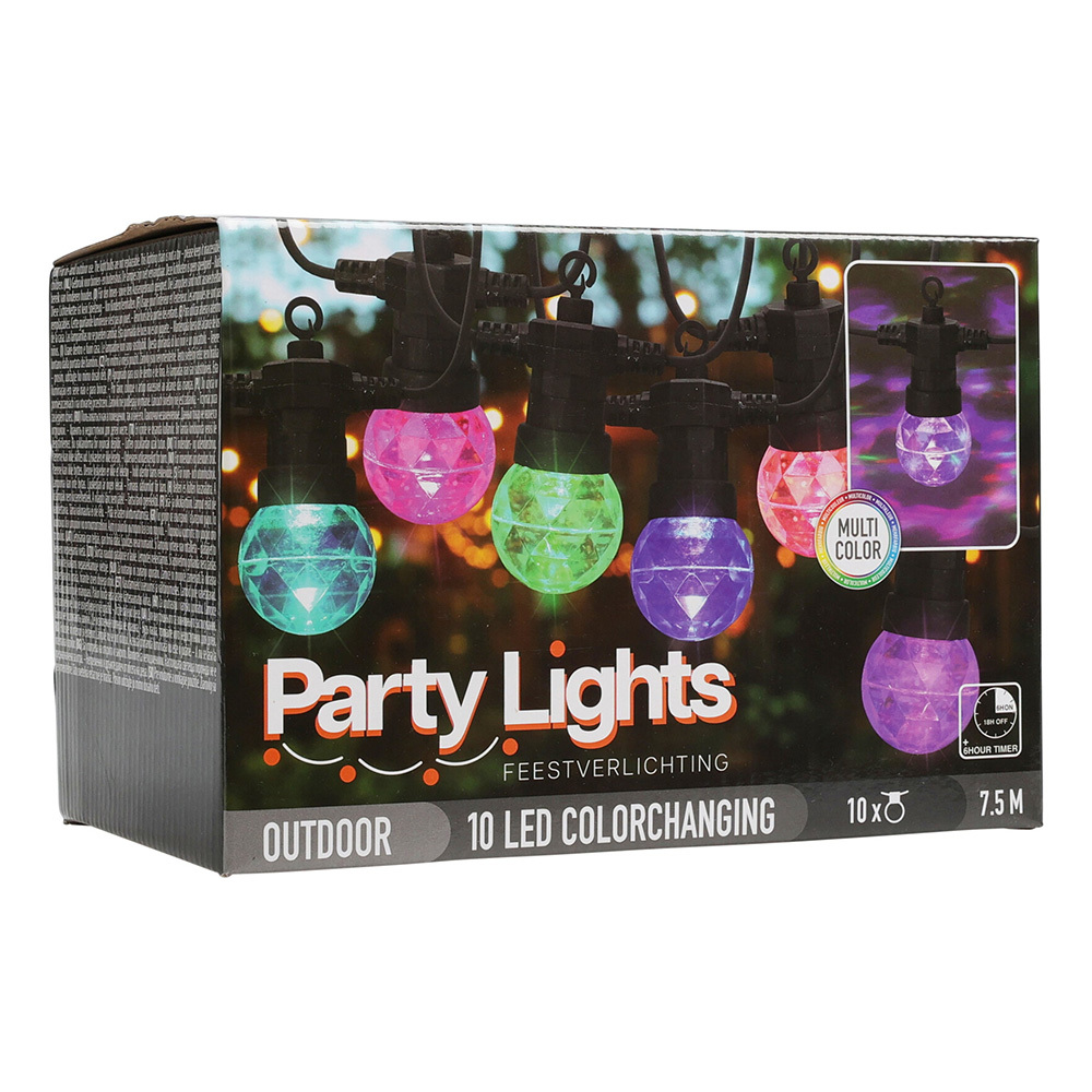Párty osvětlení - řetěz 10 LED žárovek, barevné, délka 7,5 m